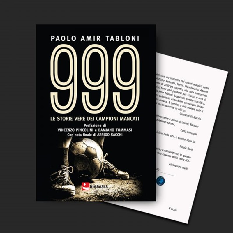 999 racchiude le storie di vita di 29 calciatori che avrebbero potuto essere quell’uno su mille che arriva e ce la fa, ma che per motivi diversi sono rimasti incastrati nella gabbia di quelli che ci hanno provato: racconti dalla voce diretta dei protagonisti intervistati da Paolo Amir Tabloni, che vive e mastica calcio dalla più tenera età, anche lui campione mancato dai sogni infranti.